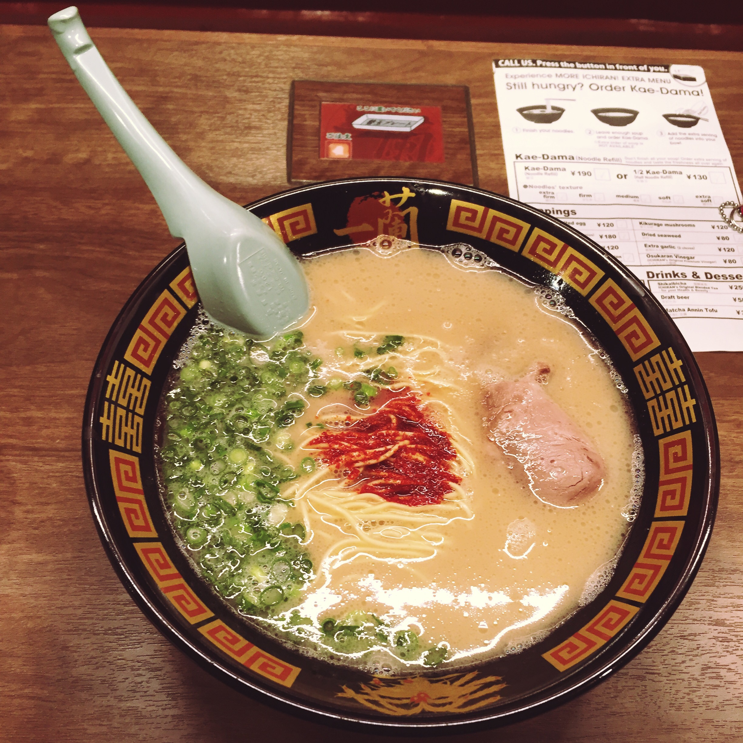 Hands down the best ramen I’ve ever had in my life. This restaurant was the epitome of Japan’s introverted culture. You could eat an entire meal here without ever speaking or seeing someone’s face. A vending machine outside took your money, you sat in a single booth with a small window in front of you, filled out a form to specify how you wanted your ramen, there was a tap for water in your booth, and a person would push your ramen through the window when it was ready.