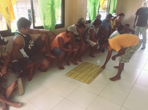 We use various activities to facilitate this conversation. Activities that identify things like what resources are present, how people are using them, when people are using them, what time of year is most bountiful for fishing, what problems the fisherfolk of this barangay are experiencing, and what opportunities exist for alternative livelihoods? Sometimes, if people aren’t too antsy to leave, we play a fishing game to exemplify why we need to properly manage our fisheries.